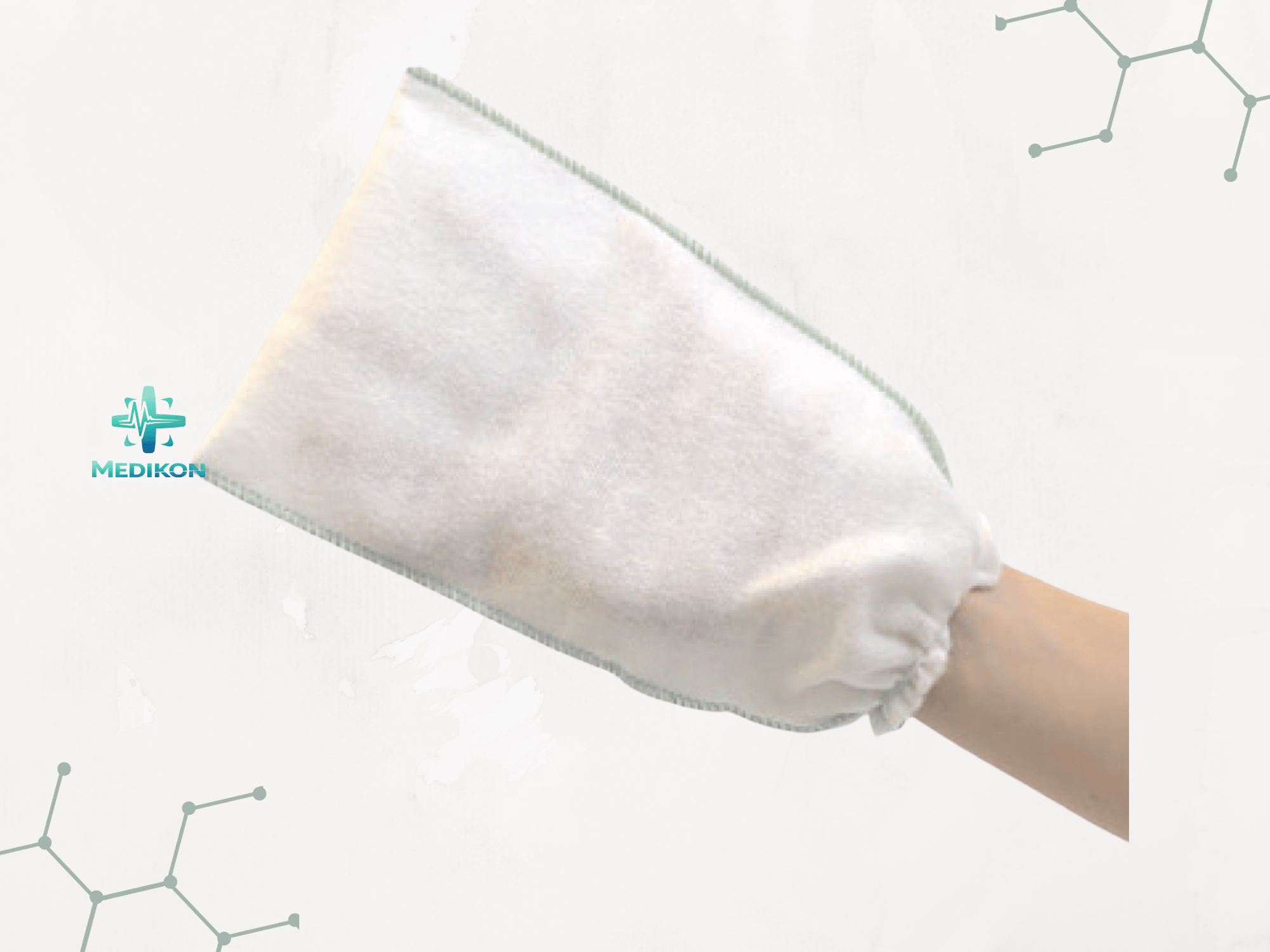 Rukavica za pranje pacijenata s elastičnom gumicom, mekana, čvrsta, neiritirajuća, za jednokratnu upotrebu.
